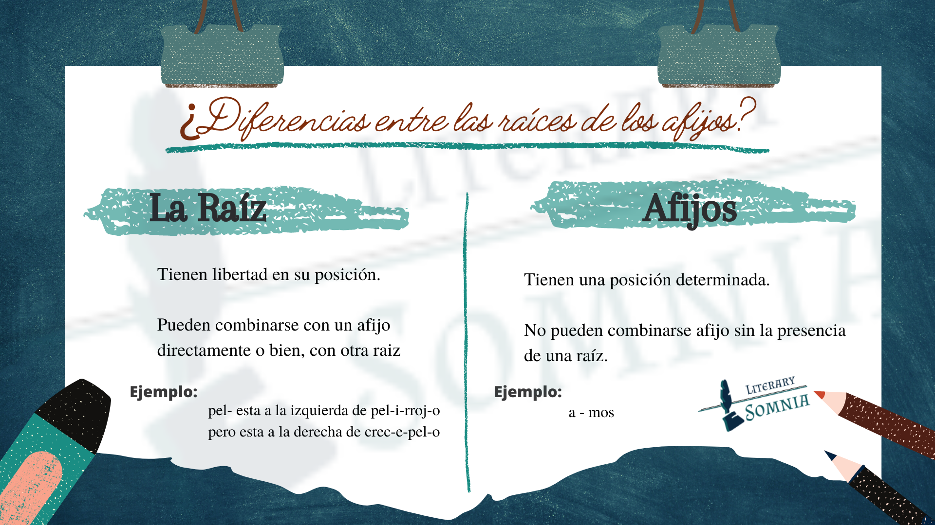 Observamos, la siguiente infografía de principales diferencias entre raíz y afijos