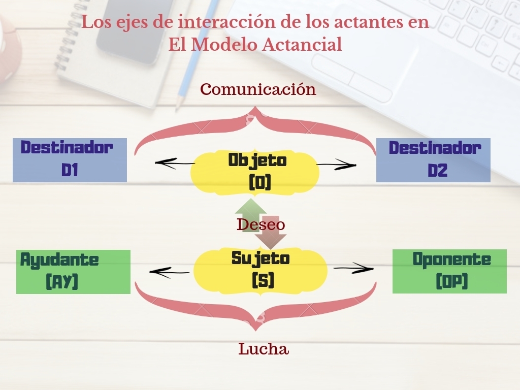 opera desde tres ejes fundamentales que son: Los ejes que corresponden al modelo actancial son el deseo, la comunicación y la participación.