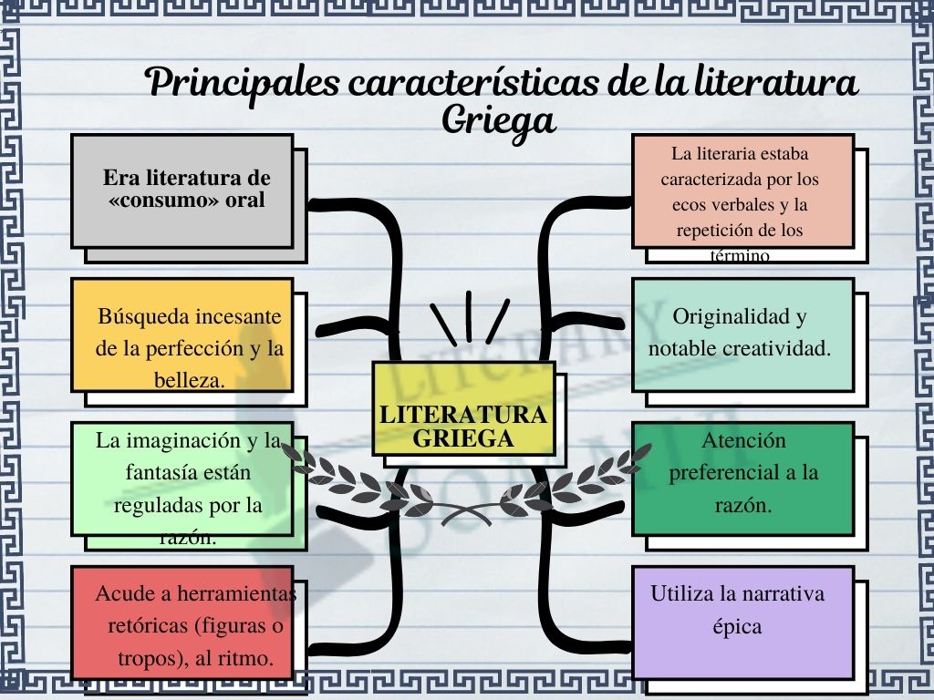 Infografía sobre las principales características de la literatura griega: Una guía visual para los amantes de la literatura clásica. Descubre las características más importantes de la literatura griega en esta infografía visualmente atractiva. Perfecto para estudiantes de literatura y amantes de la historia. Explora nuestra sección de literatura clásica para más información sobre la cultura griega y su influencia en la literatura mundial.