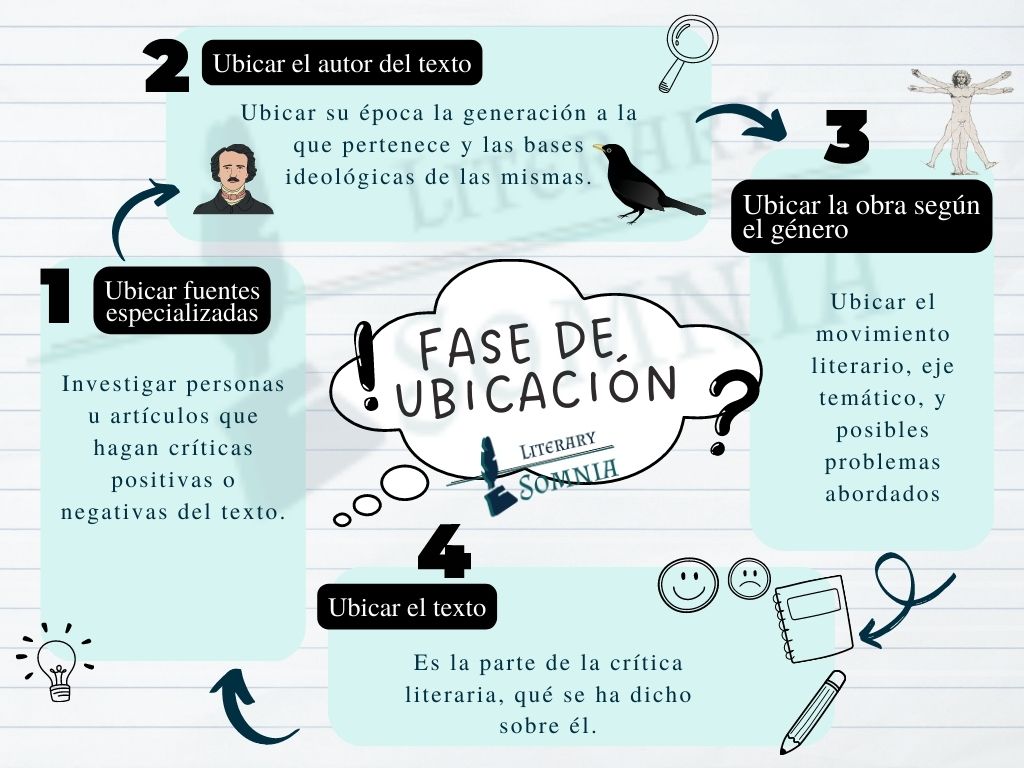 La fase de ubicación del texto es la segunda fase consta de cuatro partes para el análisis de un texto literario.